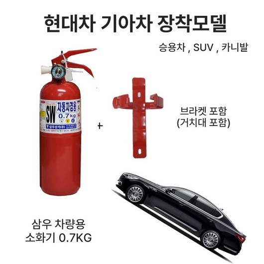 크기와 무게: 차종에 맞는 적절한 크기와 무게의 소화기를 선택해야 합니다.